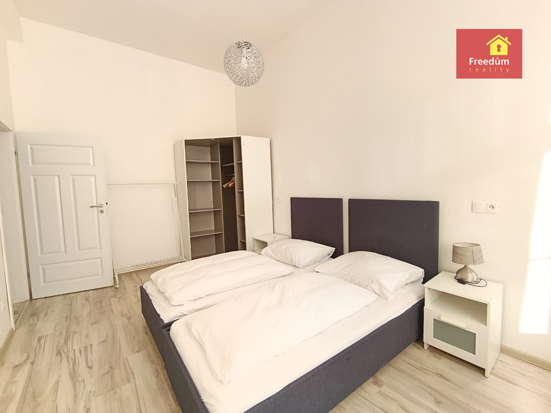 Prostorný byt v přízemí vily, osobní vlastnictví. V bytě jsou dvě oddělené ložnice, obývací pokoj je spojen s kuchyní, k dispozici je koupelna se sprchovým koutem a WC, další WC zvlášť. Byt je zařízený. K bytu náleží místo ve sklepě.